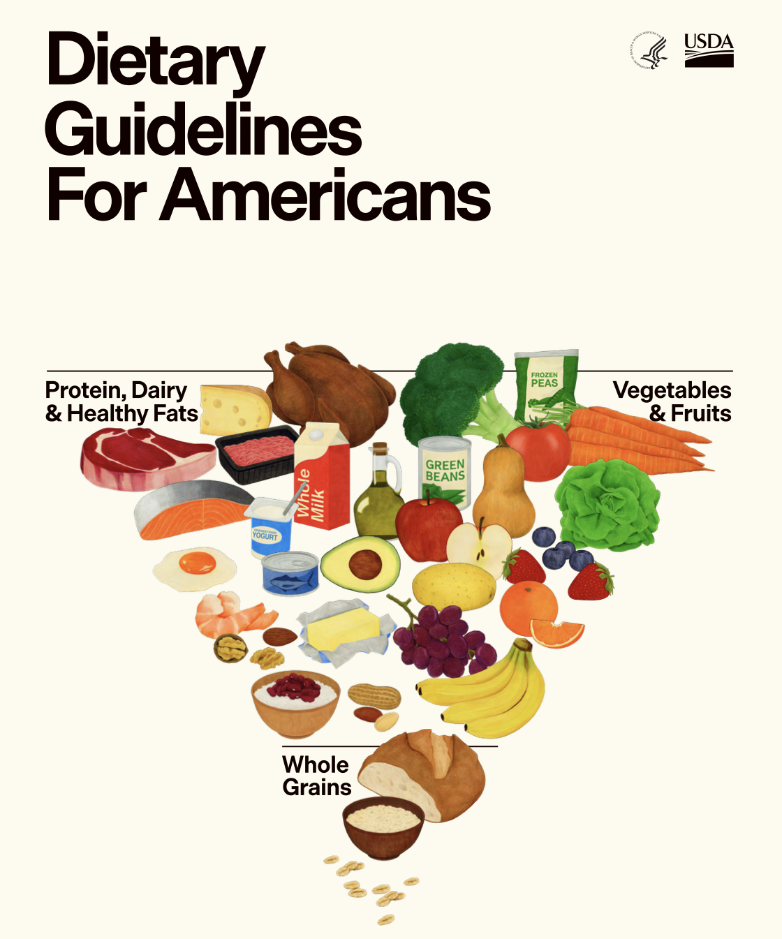 En enero de 2026, el USDA y el HHS de Estados Unidos publicaron las Dietary Guidelines for Americans 2025–2030 y las acompañaron con una pirámide “invertida”, presentada como un “reset” del mensaje público: priorizar alimentos reales (proteínas, lácteos, verduras, frutas, grasas saludables y granos integrales)...